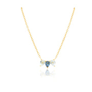 Collar gargantilla minimal realizada en oro amarillo de 18 quilates con tres topacios talla marquise. La cadena mide 40cm de largo y el motivo principal tiene un ancho de 1cm.